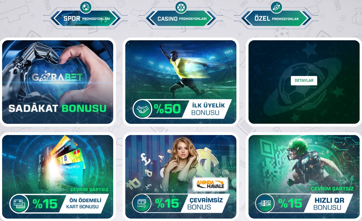 Gorabet-Live bahis şirketinin birçok avantajı vardır, bunlardan biri mükemmel bir bonus sistemi, günlük olarak güncellenen ve genişletilen özel promosyonlardır. Sürekli oyununuz burada teşvik edilir, artan oranlı bahisler, kazino oyunları, bahislerde başarısız olanlar için bir bonus sistemi var.