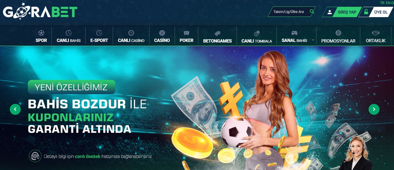 Gorabet, oyun endüstrisinde 5 yıllık deneyime, Avrupa spor pazarlarında bahisçiler ile işbirliği yapan profesyonel yönetici ve menejerlere sahip dünyaca ünlü bir bahis şirketidir. Burada karlı bir yatırım yapabilir ve gelirinizi kat kat aşarak çok çeşitli fırsatlara sahip olabilirsiniz. Şirketin uzmanlaştığı canlı spor bahislerine ek olarak, Gorabet, canlı bir kazino, çok çeşitli kumar oyunları ve basit bir bonus sistemi sunmaktadır.