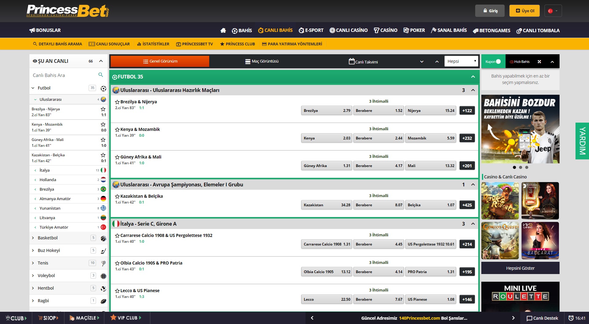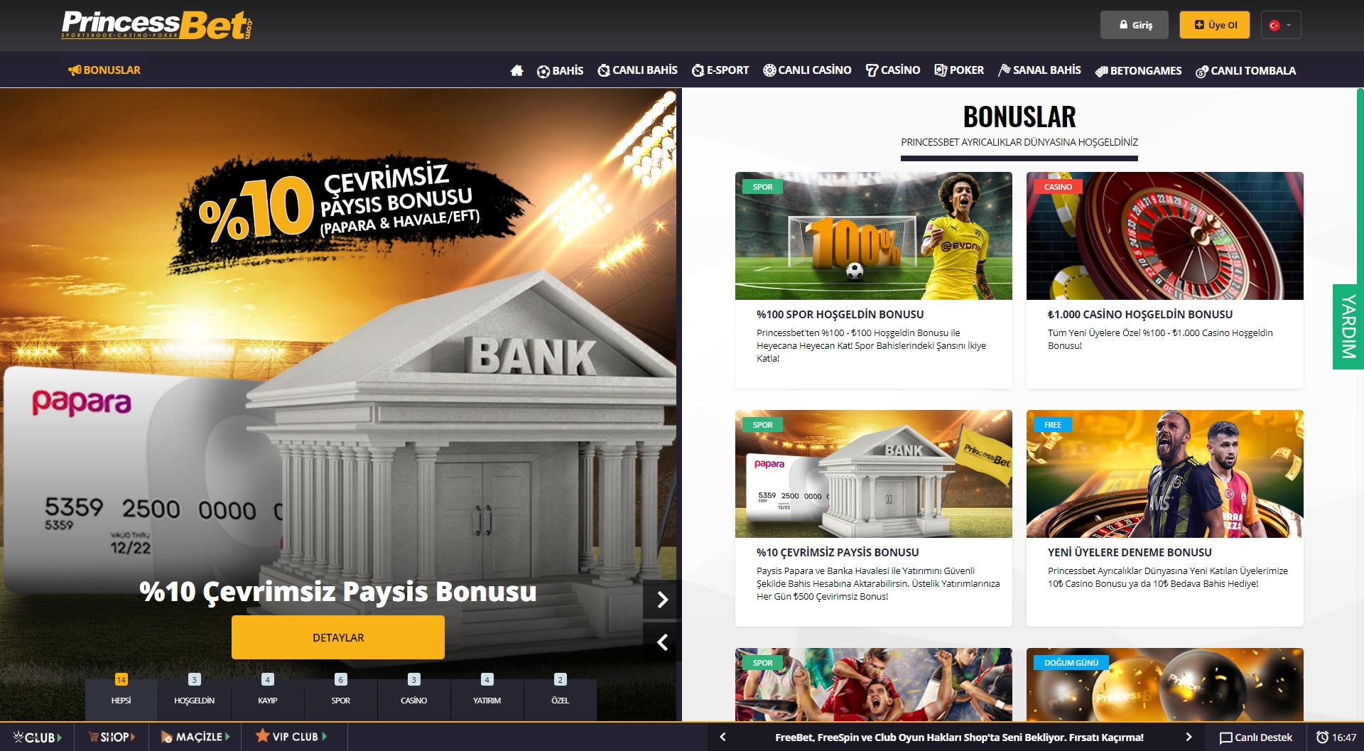 Princessbet canlı bahis bölümüne odaklanır. Amerikan turnuvalarının hayranları için burada kazanma oranları daha yüksektir.
